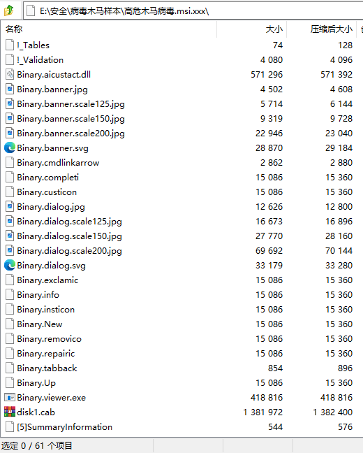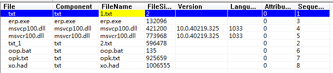 使用微软提供的工具”Orca”打开MSI文件,可以看到其打包的文件。看起来似乎是一个图形界面的正常程序。