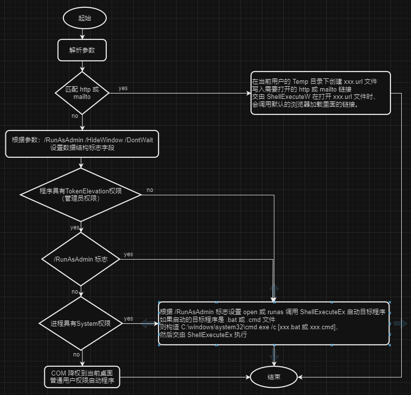 详细分析了一下这个程序,貌似一个通用启动器,主要是调用”ShellExecuteEx”启动多种类型的文件。