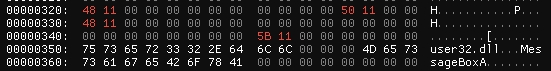 | 0x350 | 0x1150 | 11 | DLL Name | “user32.dll\0” | DLL名字符串 |