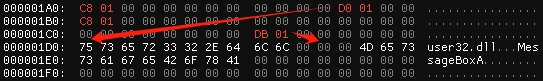 | 0x1AC | 0x1AC | 4 | DLL Name RVA | 0x1D0 | DLL名字符串存放位置偏移量 |